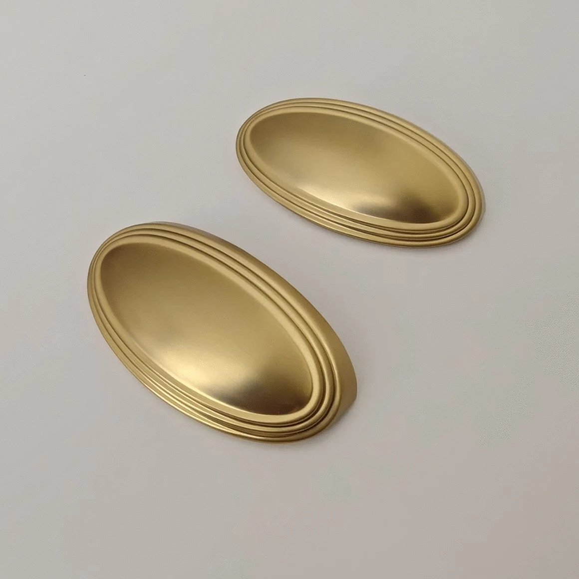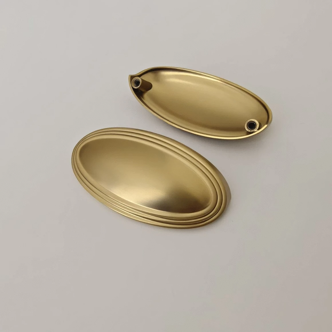 Мебельная ручка чашка овальной формы 92 мм (76 межосевое) вынос 38 мм, высота 27 мм.